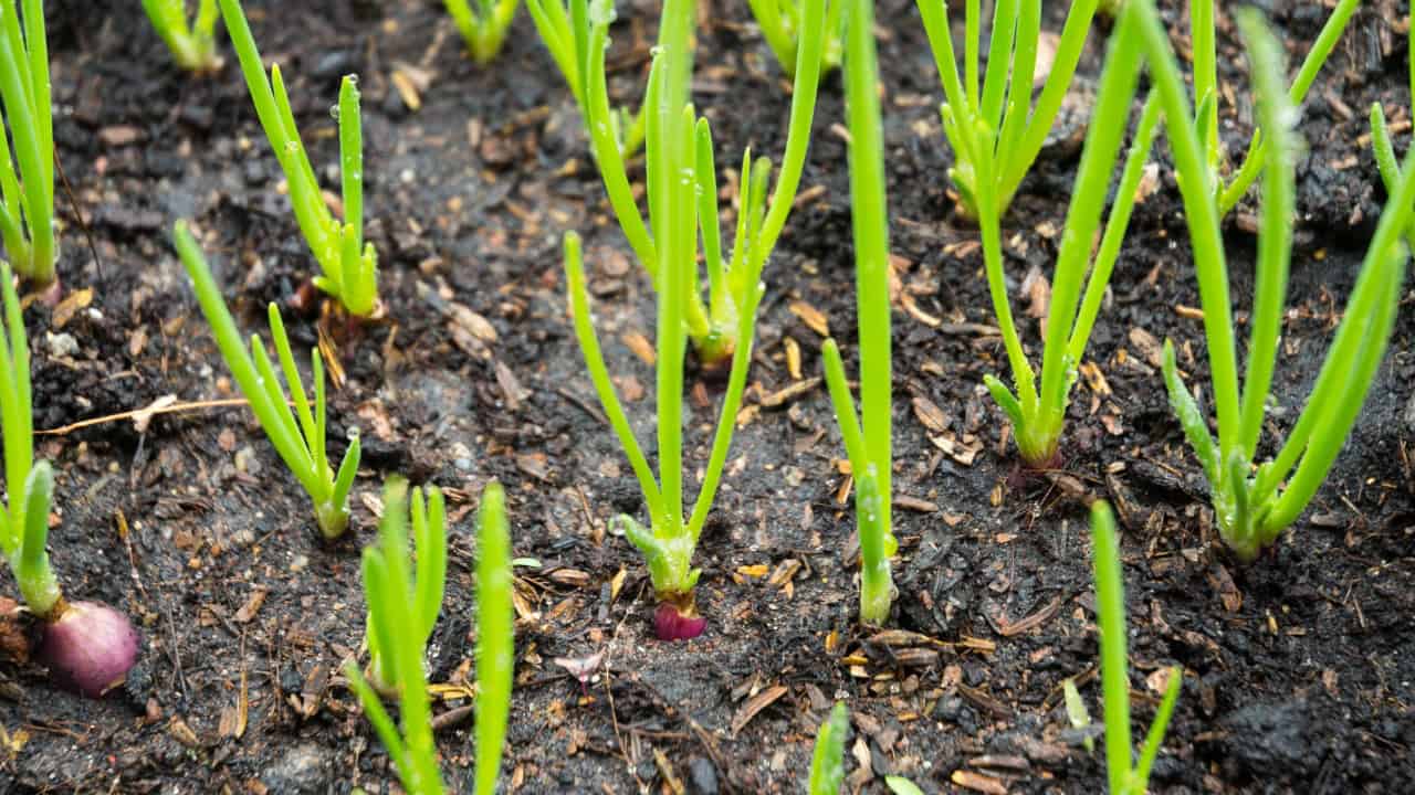 Onions and garlic are from the same family, and when they’re planted together, they end up fighting for the same nutrients.