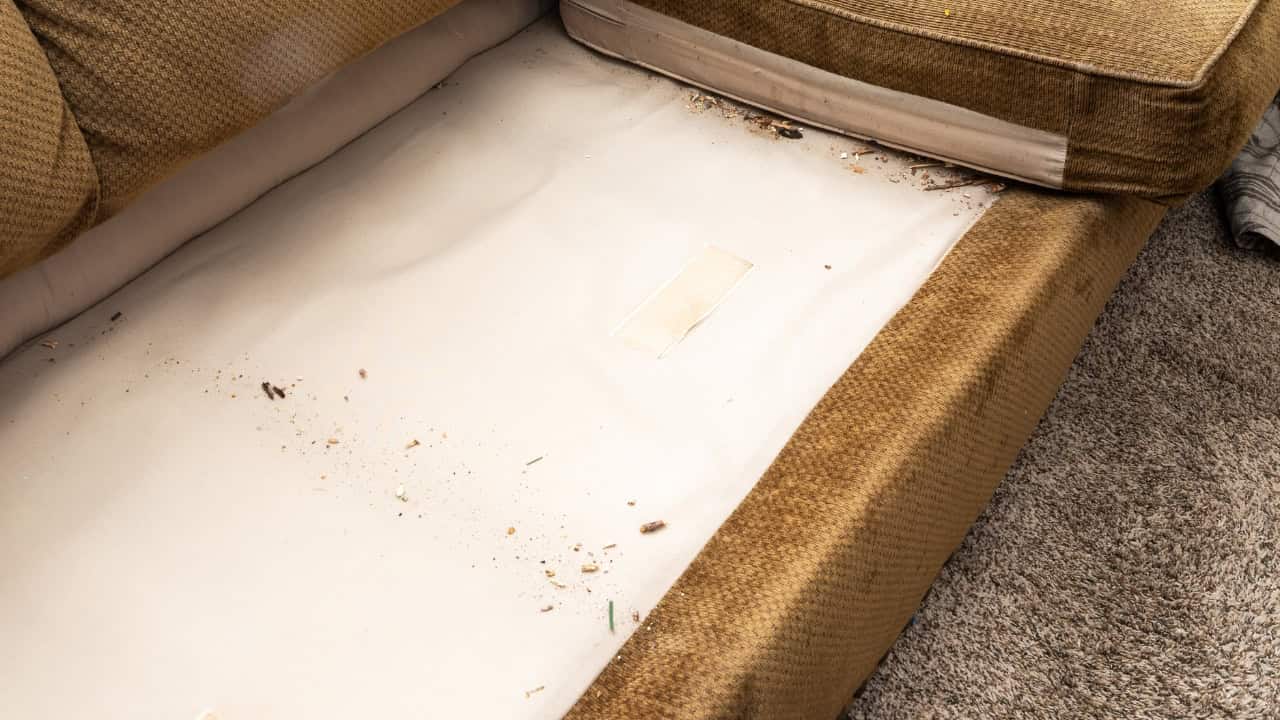 Take the cushions off and vacuum everything—under, around, and between the cracks. If you find anything sticky, a damp cloth with a little dish soap will do the trick. Make it a habit to do this every couple of weeks, especially if you have kids or pets. And maybe set a rule about snacks staying at the table… not that anyone will actually follow it.
