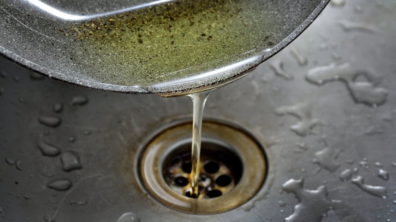 It might seem harmless when hot, but grease and oil solidify as they cool, creating thick blockages that trap food particles and lead to clogged pipes. Even if you rinse it with hot water, it will eventually stick to the inside of your plumbing.