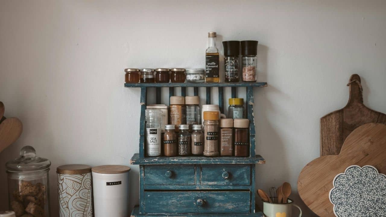A tiered spice rack helps you see all your spices at once without digging through clutter.
