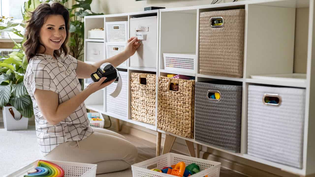 Keeping children’s toys organized can be a challenge, but labels can help. I label bins and boxes with the types of toys they contain, such as “Legos,” “Dolls,” or “Puzzles.”