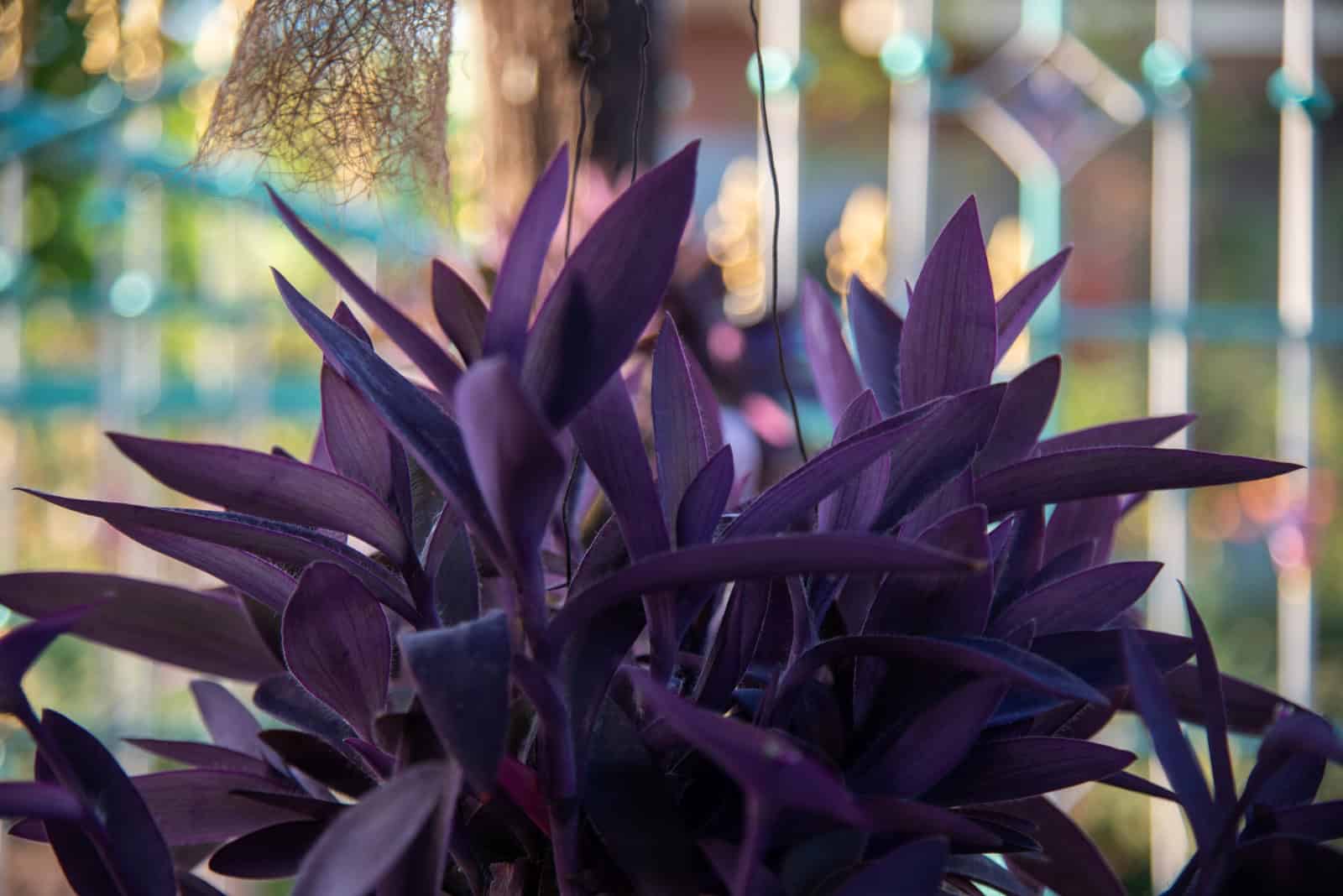 The deep purple leaves and trailing growth make Purple Heart a good choice for hanging baskets. This evergreen perennial features narrow, purple-green leaves attached to succulent purple stems, creating a vibrant display. Native to Mexico, it thrives in warm, humid conditions. To keep its color vibrant, place it in bright, indirect light. Water it only when the top inch of soil is dry and ensure good drainage to prevent root rot.