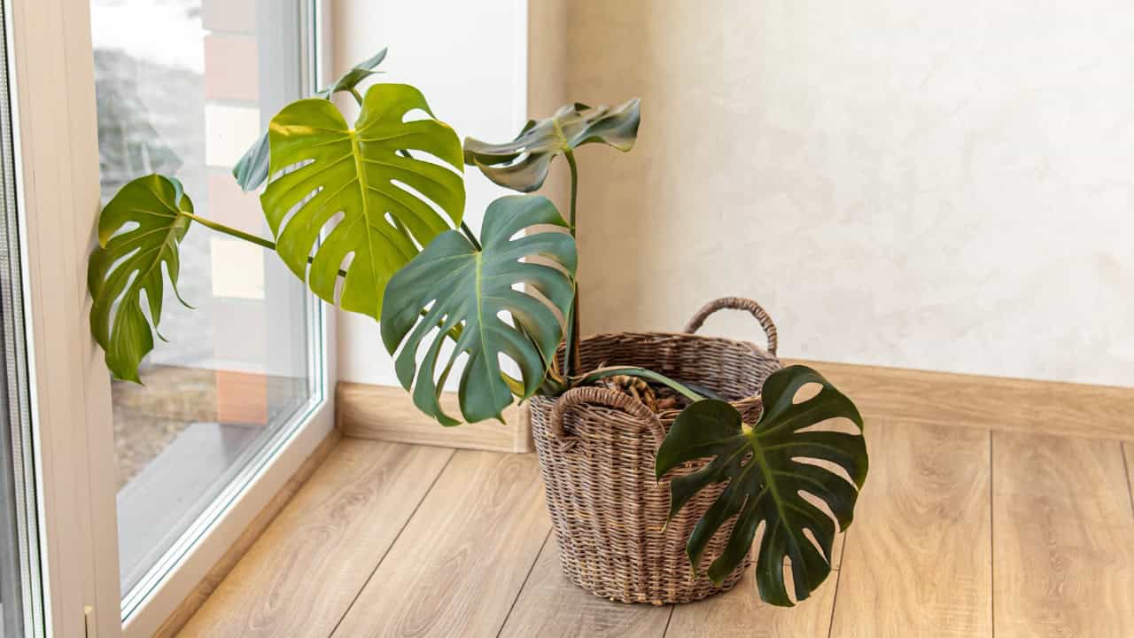 8. Place a monstera in a wicker basket