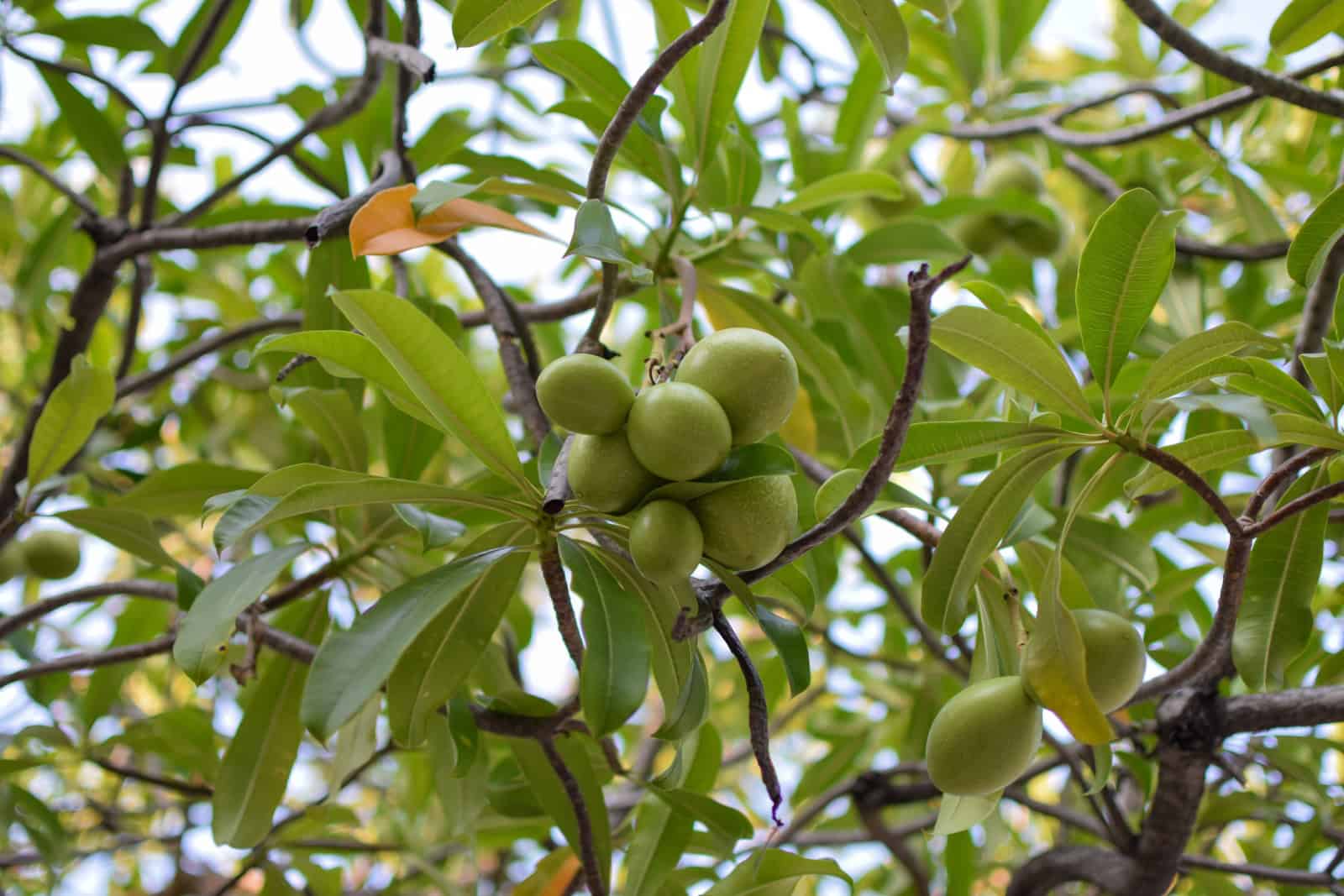 Cerbera Odollam (the suicide tree or pong-pong) is a highly toxic tree native to South and Southeast Asia, the Pacific Islands, and Queensland, Australia. The tree produces a fruit called othalanga, whose seeds contain a potent toxin called cerberin. Historically, cerberin has been used in trials by ordeal, suicides, and poisonings. The poison can cause severe symptoms, including sinus bradycardia, vomiting, and even death. Spicy food can mask its bitter flavor, making it a dangerous, poisonous tool. In Kerala, India, this tree is a significant cause of plant poisoning cases.