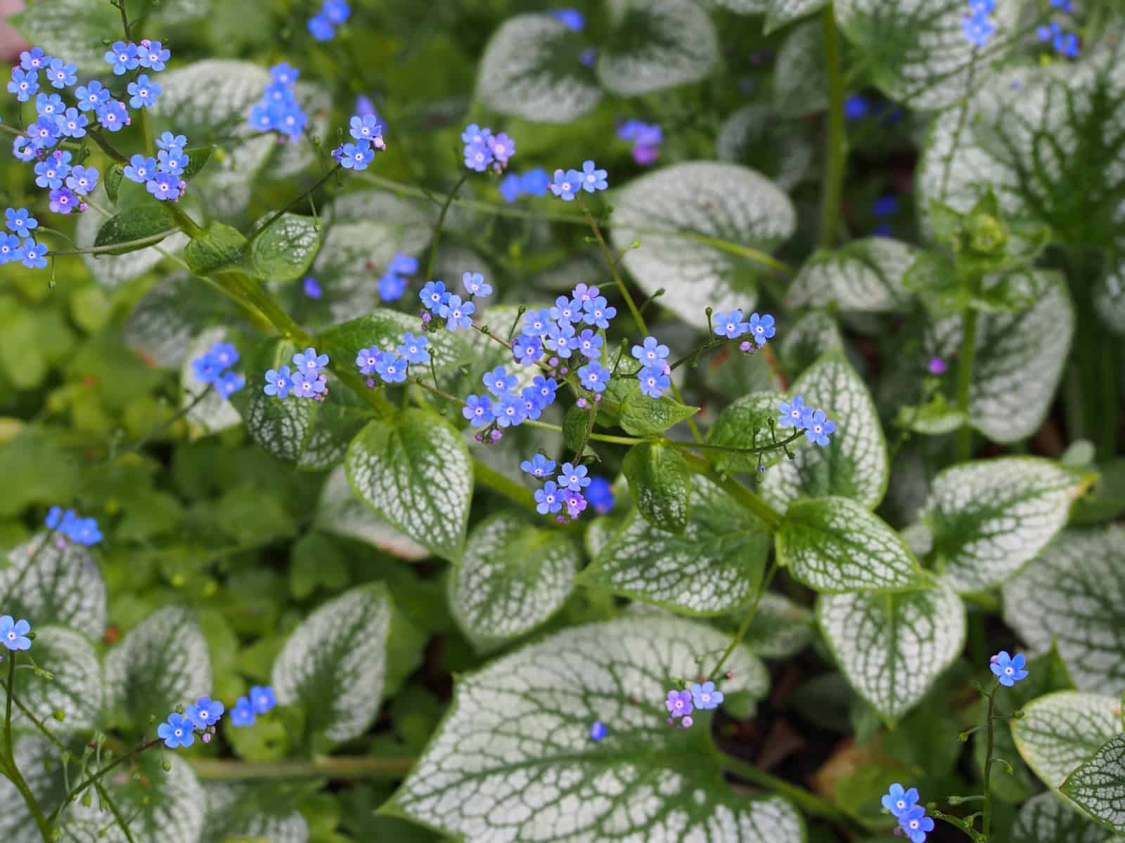 Brunnera can add beauty and tranquility to your garden with minimal maintenance. Its blue, forget-me-not-like flowers bloom in early spring, while its heart-shaped, often silvery-patterned leaves add long-lasting interest. Native to Eurasia, Brunnera thrives in shady garden spots, making it perfect for underplanting in woodland gardens, along pathways, or as ground cover in shaded borders.